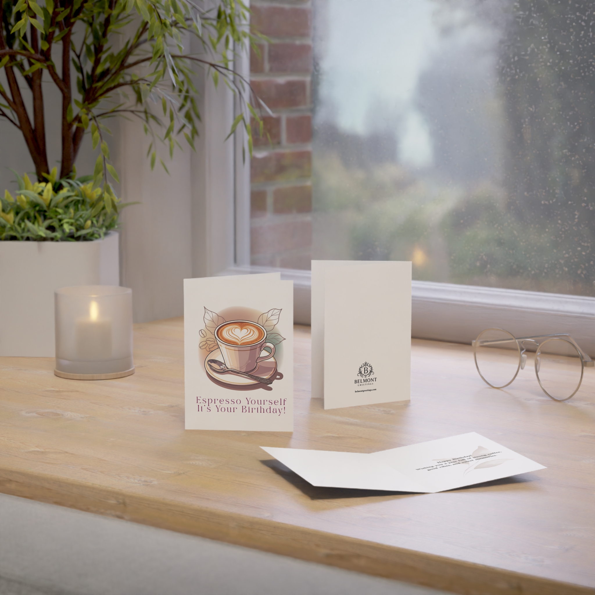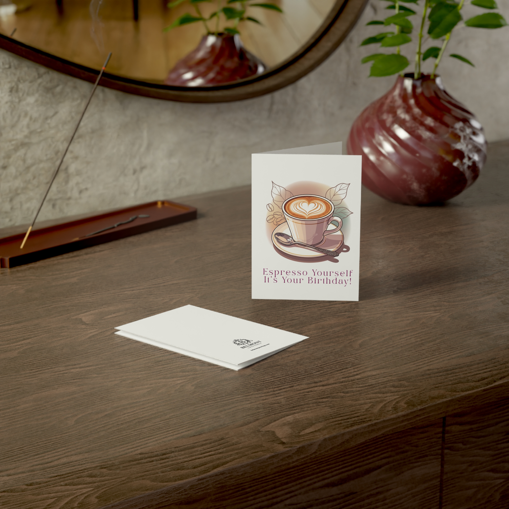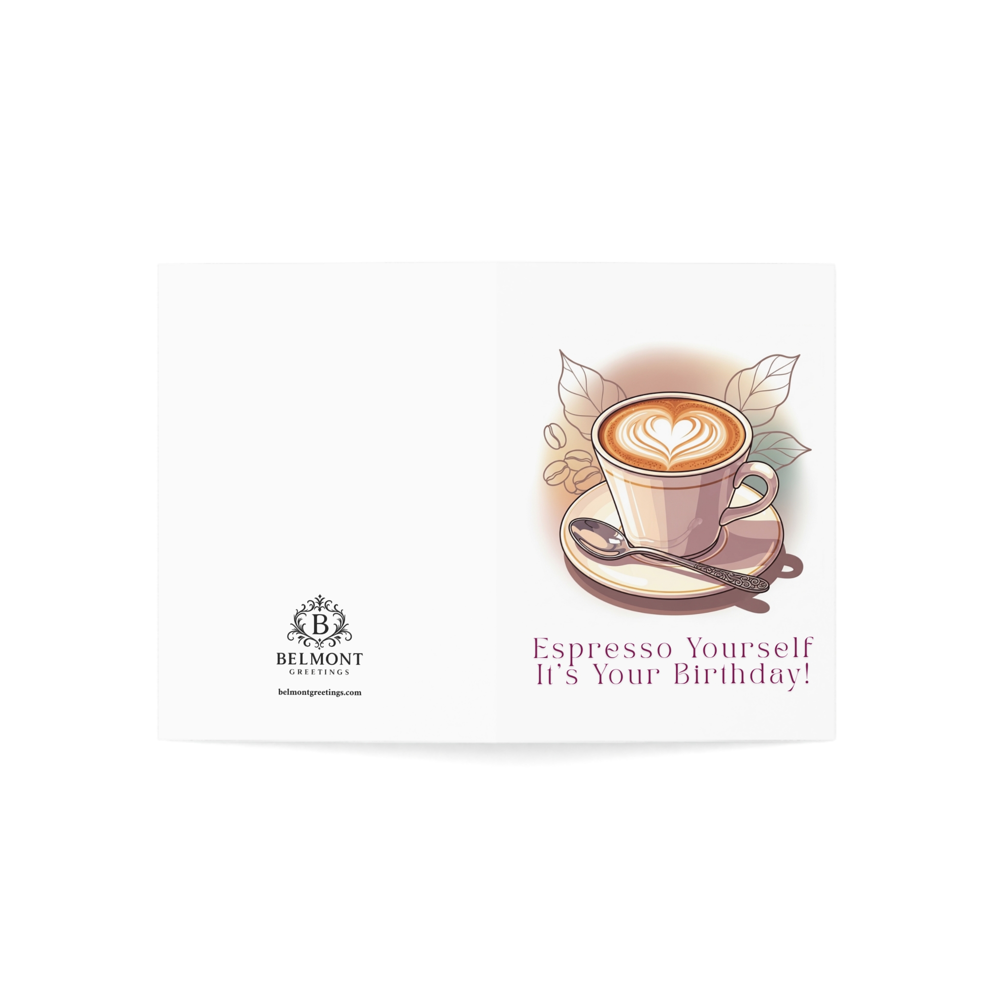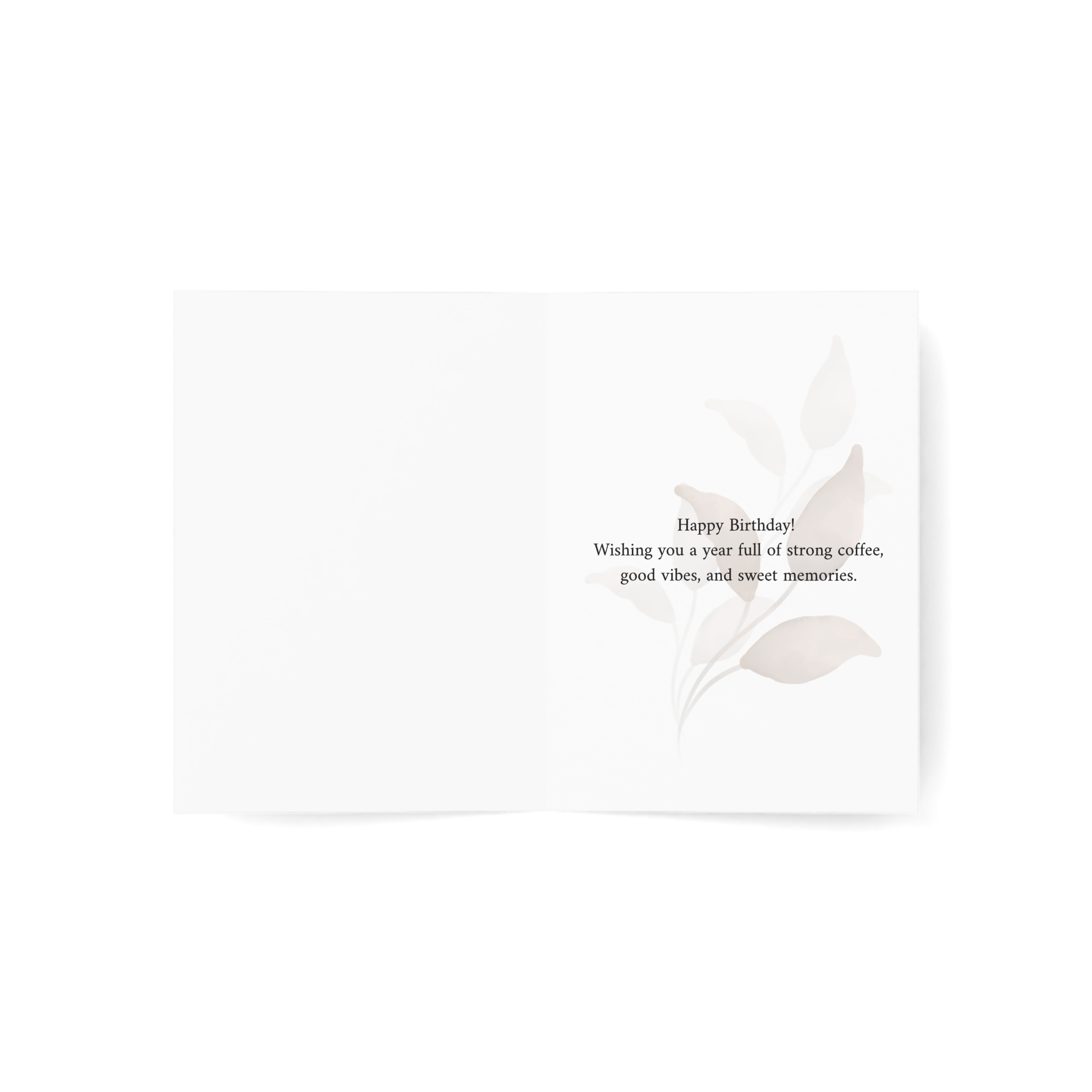 A charming birthday card featuring a beautifully illustrated latte with delicate botanical accents and a clever coffee pun. Perfect for caffeine enthusiasts and those who appreciate wordplay. This card combines cozy warmth with playful humor, celebrating another year with style and a shot of personality.