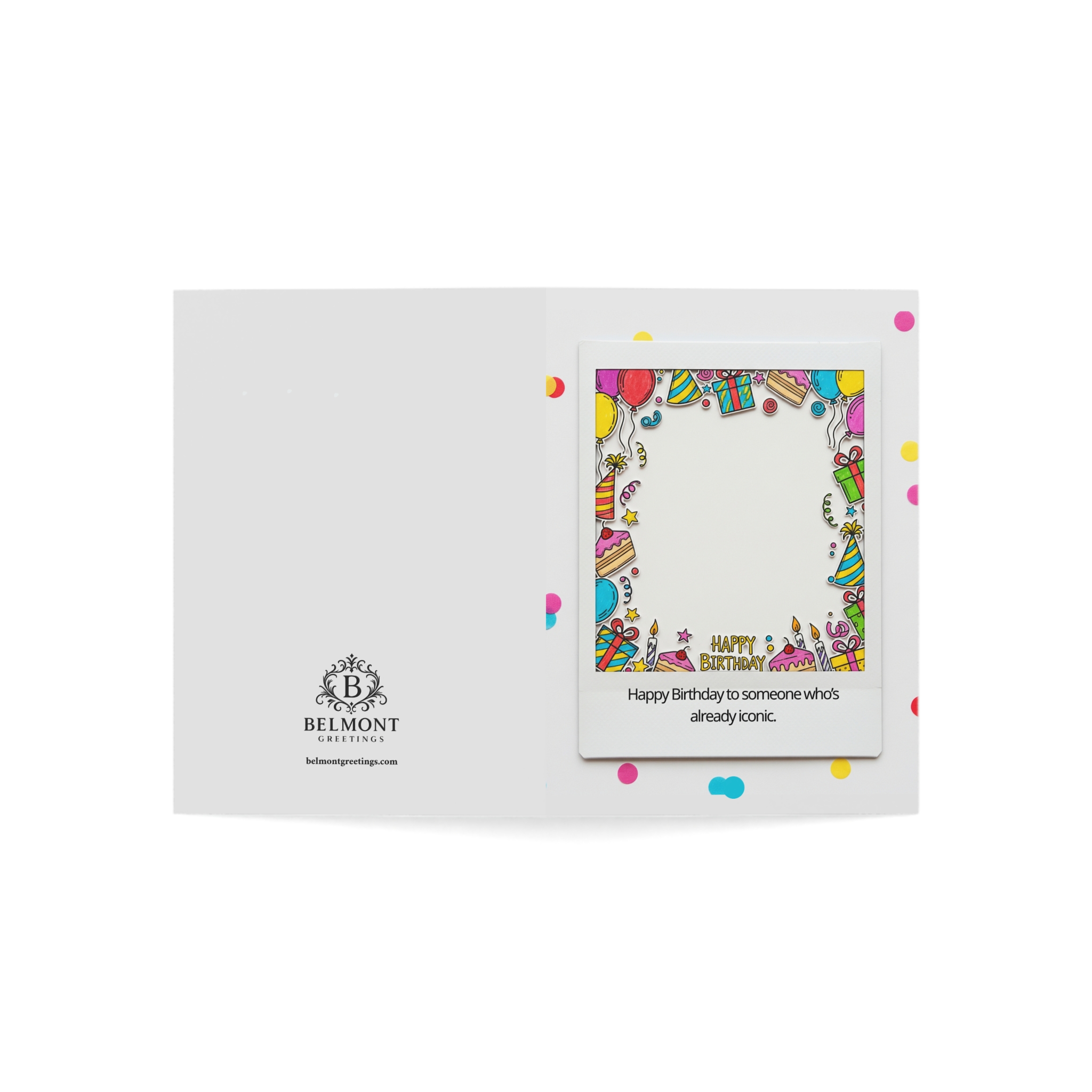 A creative birthday card featuring a polaroid-style frame filled with colorful party icons and confetti accents. Perfect for social media-savvy teens and those who love capturing memories. This card combines modern aesthetics with fun energy, celebrating someone who's already making their mark.